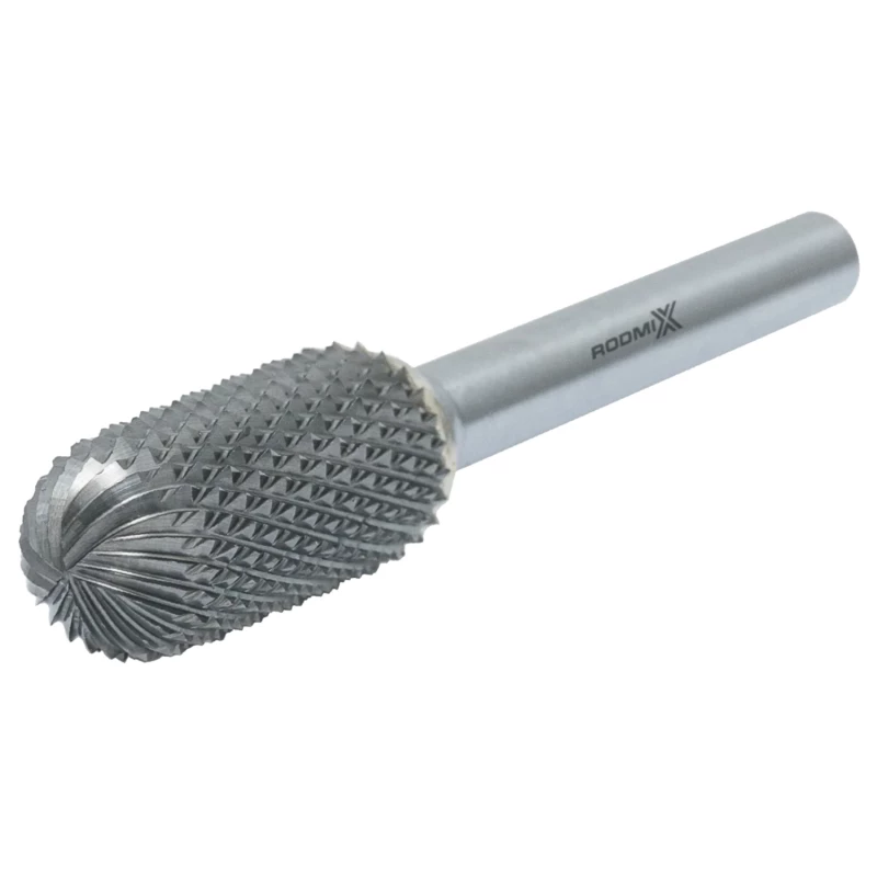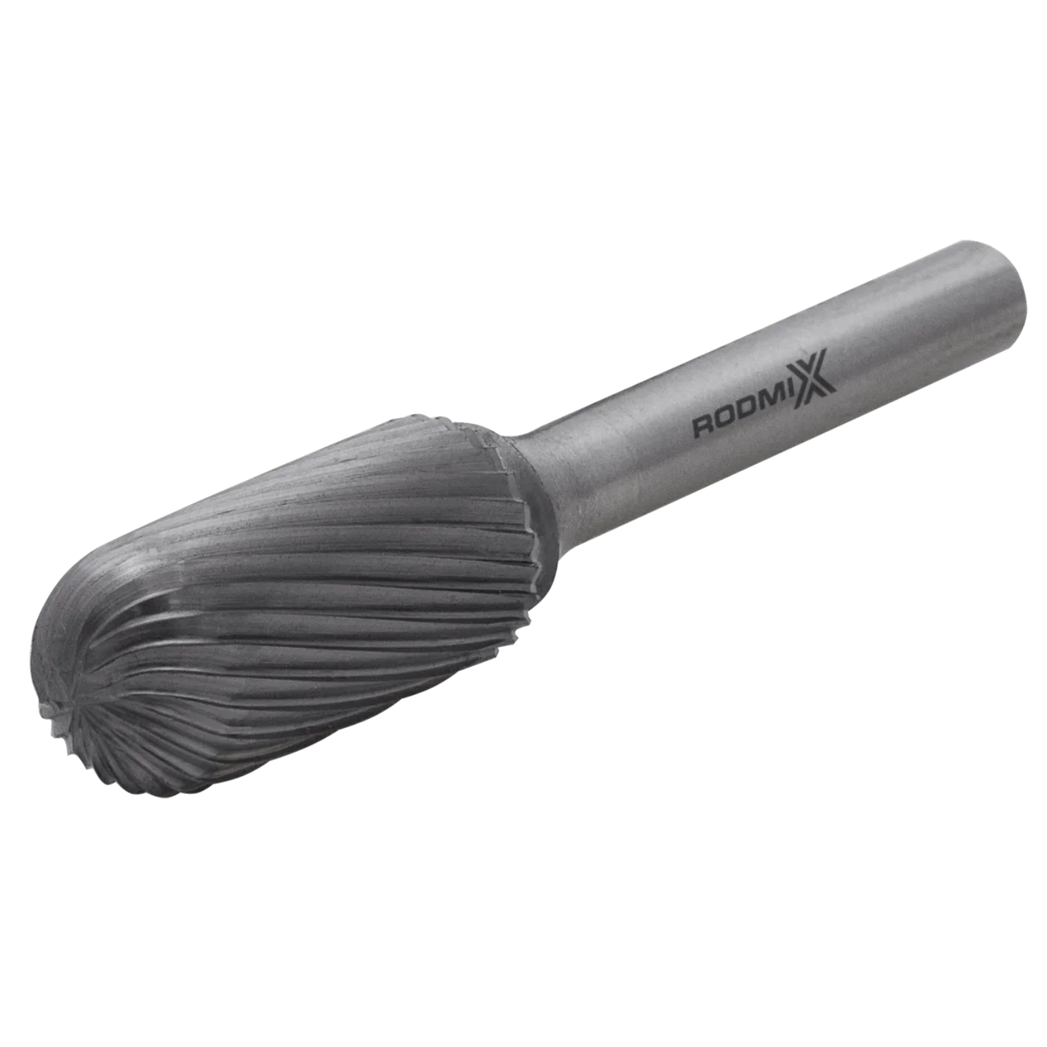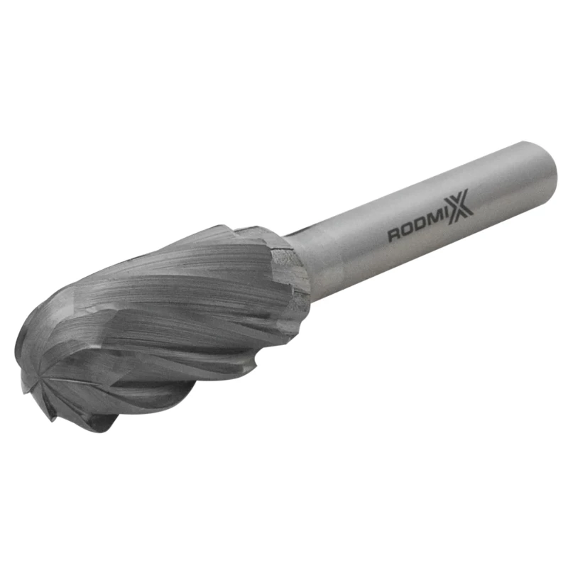 Рабочая часть борфрез Rodmix выполнена из высококачественного твердосплава, аналога ВК8 (твердый карбид вольфрамовый сплав), и соединяется с хвостовиком прогрессивным способом, что в совокупности обеспечивает высокий ресурс, износостойкость и качество обрабатываемой детали (зачистку кромок и швов сварки, скругление краёв, удаление заусенец, обработка пазов, подгонка деталей и многое другое).