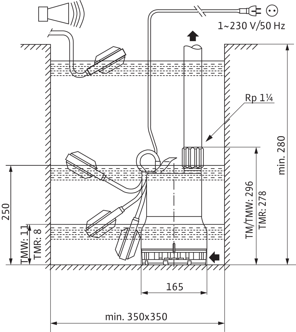 Габаритный чертеж Wilo-Drain TM/TMW/TMR 32/8