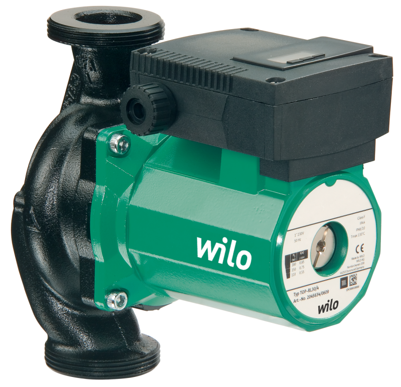 Не требующий обслуживания циркуляционный насос с мокрым ротором с резьбовым соединением; возможен выбор ступеней частоты вращения для регулировки мощности.