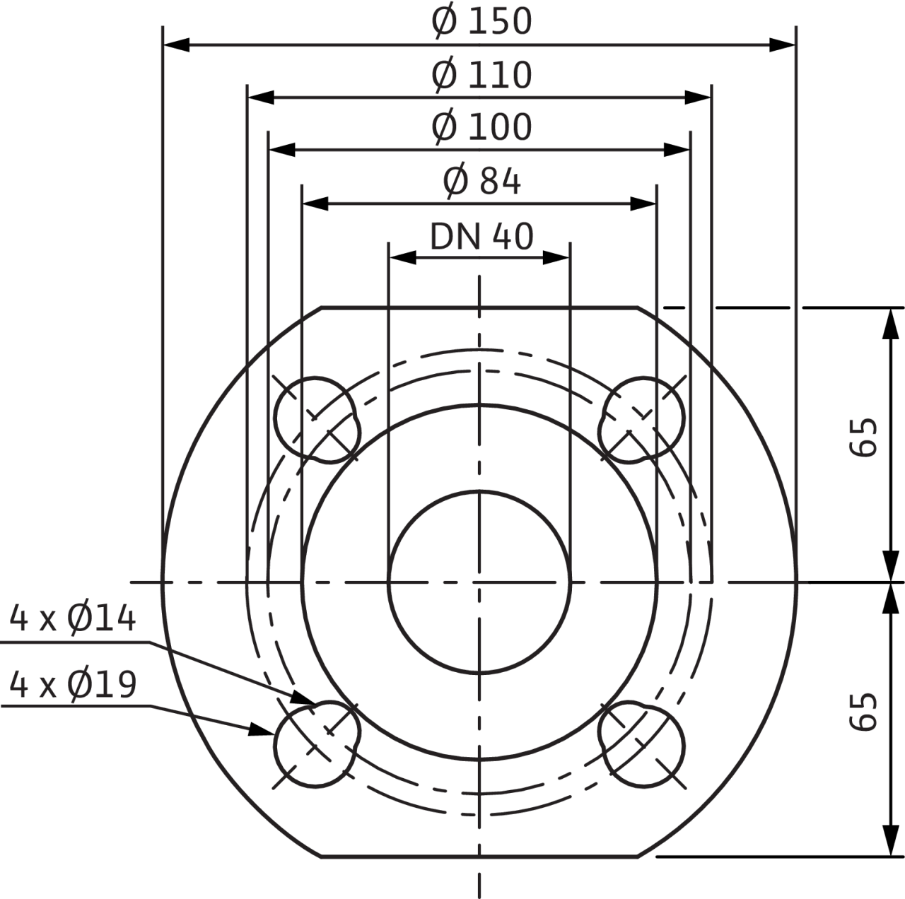 | Номинальный внутренний диаметр фланца | DN 40 |