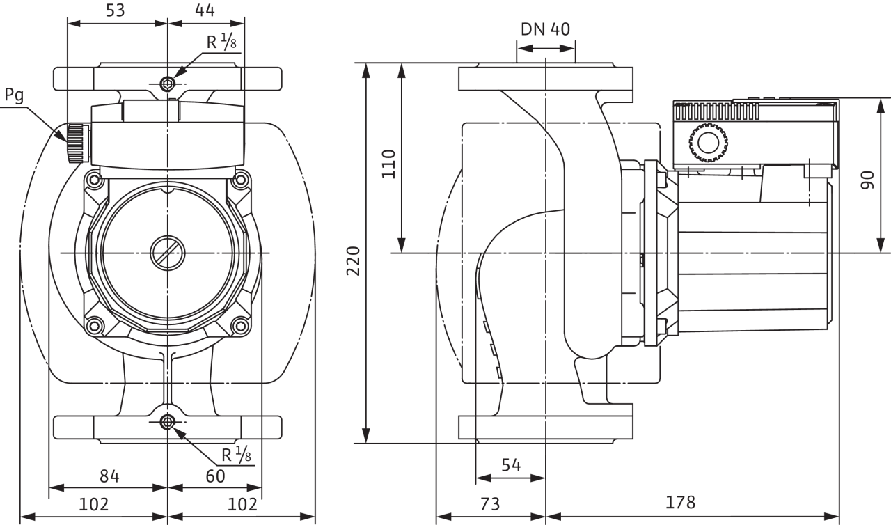Не требующий техобслуживания циркуляционный насос с мокрым ротором, с резьбовым или фланцевым подсоединением, возможен выбор ступеней частоты вращения.
