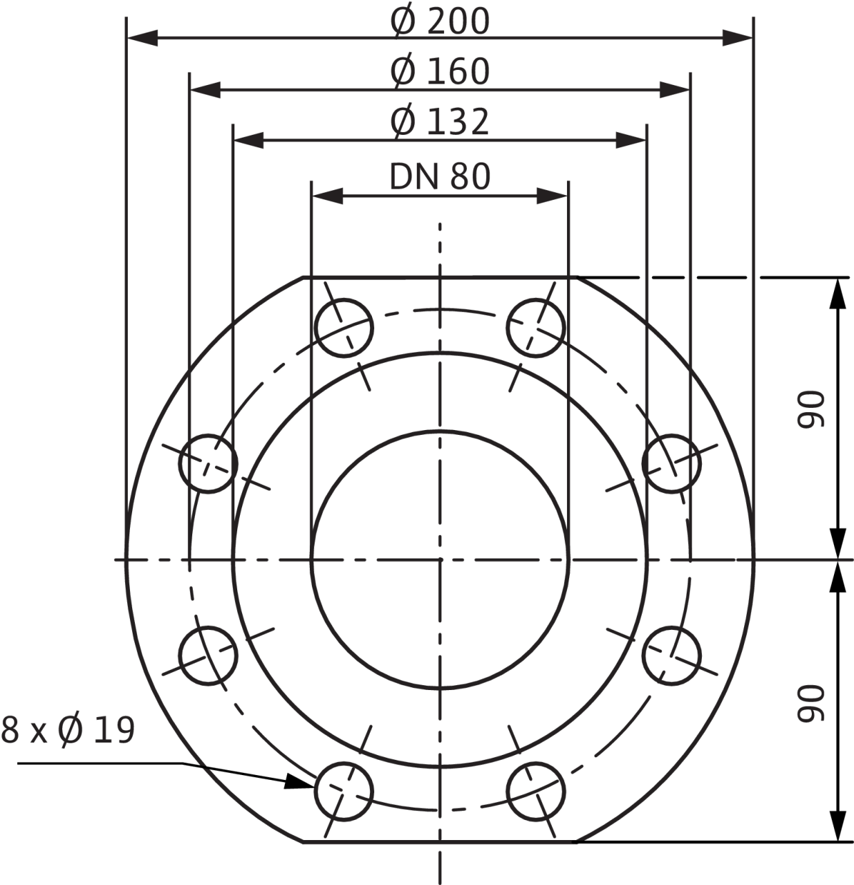 | Номинальный внутренний диаметр фланца | DN 80 |
