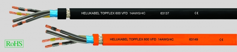 Силовой кабель высокой гибкости с повышенной маслостойкостью для современных серводвигателей; двойное экранирование посредством плёнки из специального алюминия (100% покрытие) и лужёной медной оплётки (пр. 85% покрытие) обеспечивает хорошую защиту от электрических помех и возникающих в результате них перебоев в работе. Согл. NFPA 79 2007 допущен для открытой, незащищённой прокладки как в кабельных лотках, так и в промышленных установках. Специальная PVC-оболочка чрезвычайно устойчива к маслам, хладагентам и растворителям и поэтому идеально подходит для промышленного применения при открытой прокладке, прокладки в трубах и земле.