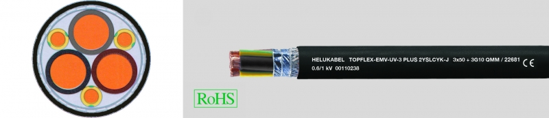 Характеристики — TOPFLEX®-EMV-UV-3 PLUS 2YSLCYK-J, кабель для двигателей 0,6/1кВ, для частотных преобразователей, с двойным экраном, с разметкой метража