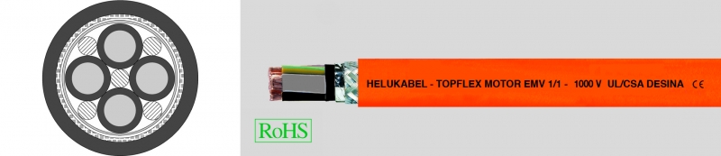 TOPFLEX® MOTOR EMV 1/1, тройное экранирование, с низкой ёмкостью, 80°C, 600В гибкий кабель для подключения двигателей, с разметкой метража