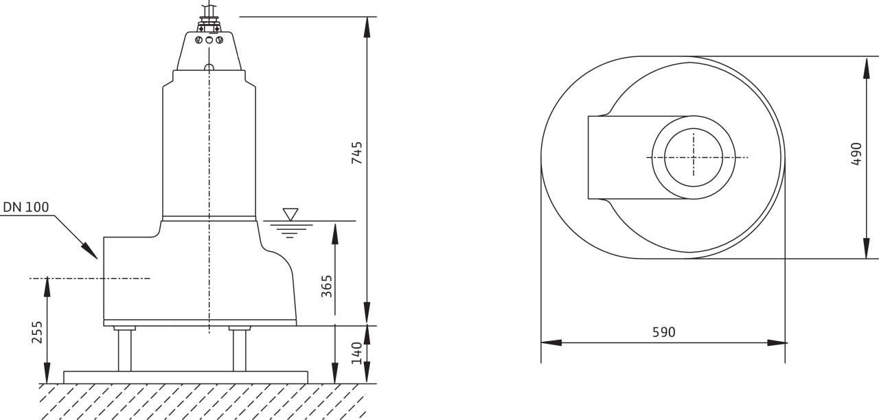Wilo-Drain TP 100 (P2 от 3,9 кВт) – стационарная установка в непогруженном состоянии
