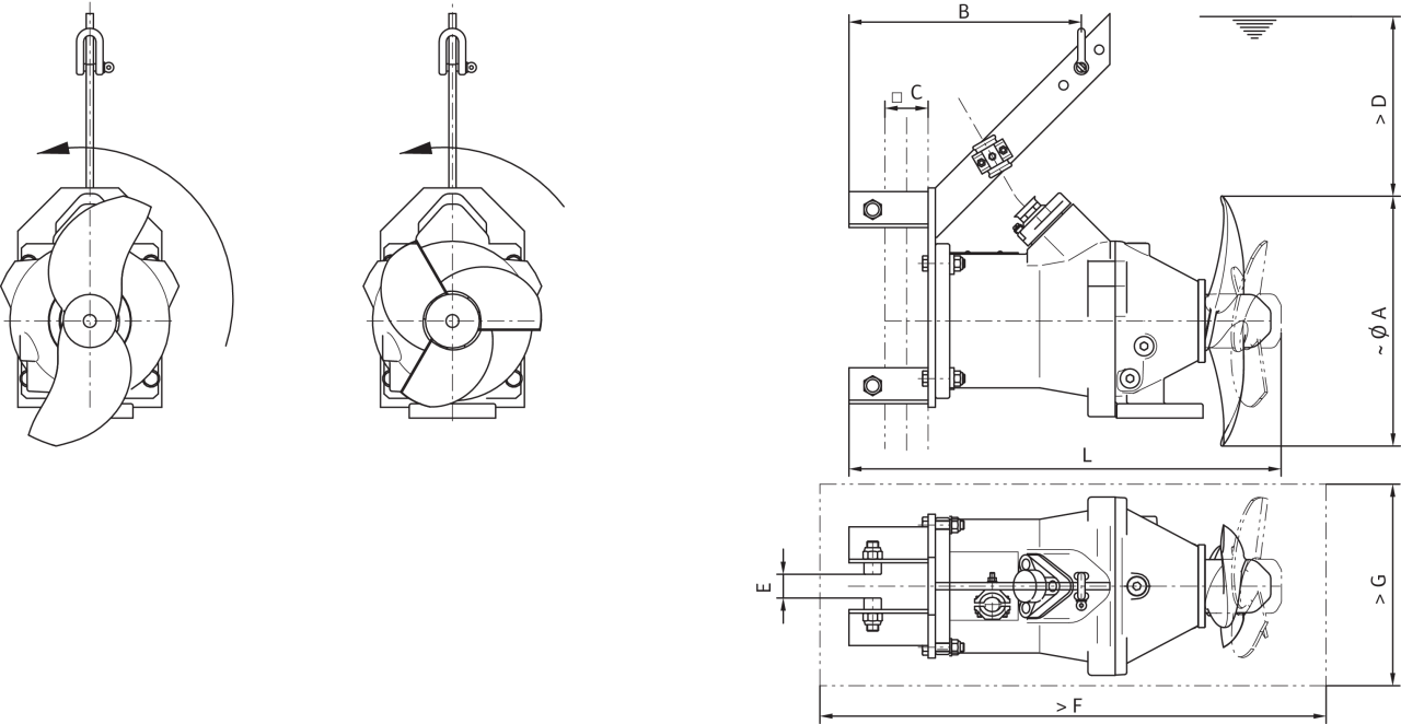 Тип пропеллера2-лопастный пропеллер с самоочищающейся ступицей; изогнут в обратном направлении; благодаря этому защищен от засорения и наматывания