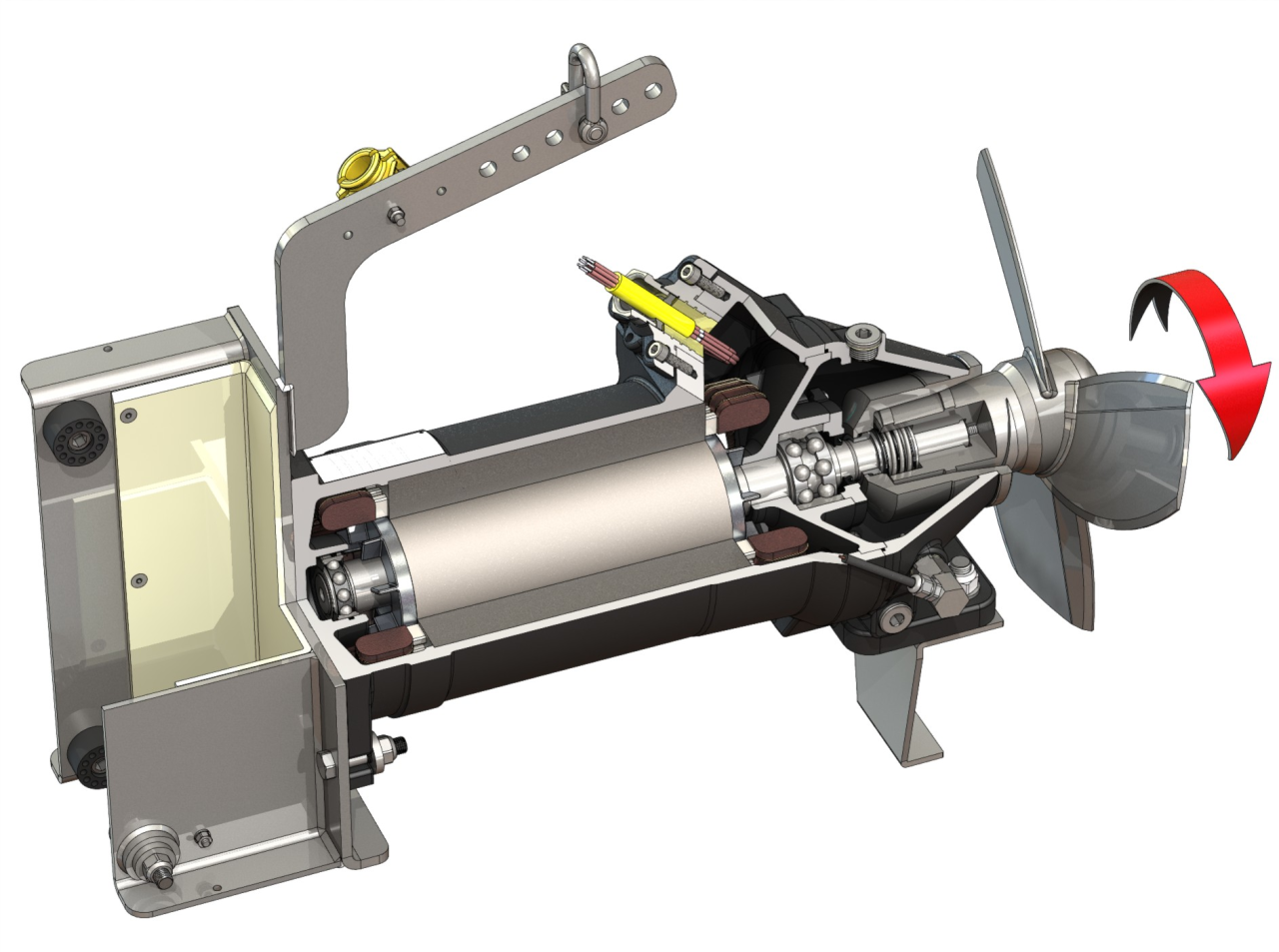 1 = рама, 2 = кабель, 3 = пропеллер, 4 = винты слива масла и маслоналивные пробки, а также устройство контроля герметичности камеры уплотнений (в качестве опции), 5 = камера уплотнений, 6 = электродвигатель