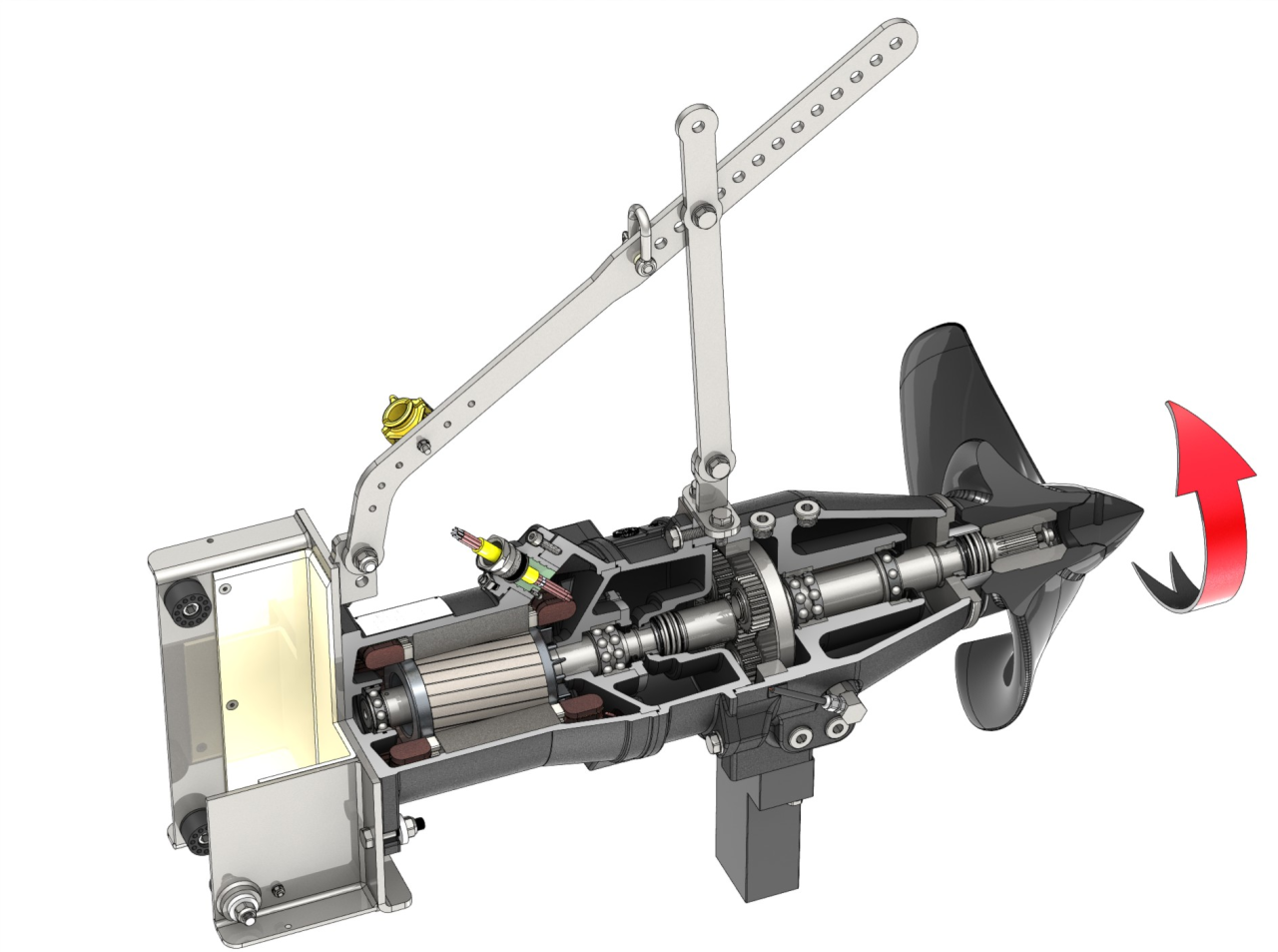 1 = рама, 2 = кабель, 3 = камера привода, 4 = маслоналивные пробки, 5 = пропеллер, 6 = форкамера, 7 = устройство контроля герметичности камеры уплотнений (в качестве опции), 8 = винты слива масла, 9 = планетарный редуктор, 10 = камера уплотнений, 11 = электродвигатель