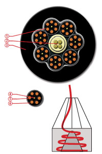 | FCA423F | 43x3,3/12AWG+FO* | 0,16 | 2,60 | 6,11 | 2000 | 52,0 | 55,0 | 4,500 | 800 |