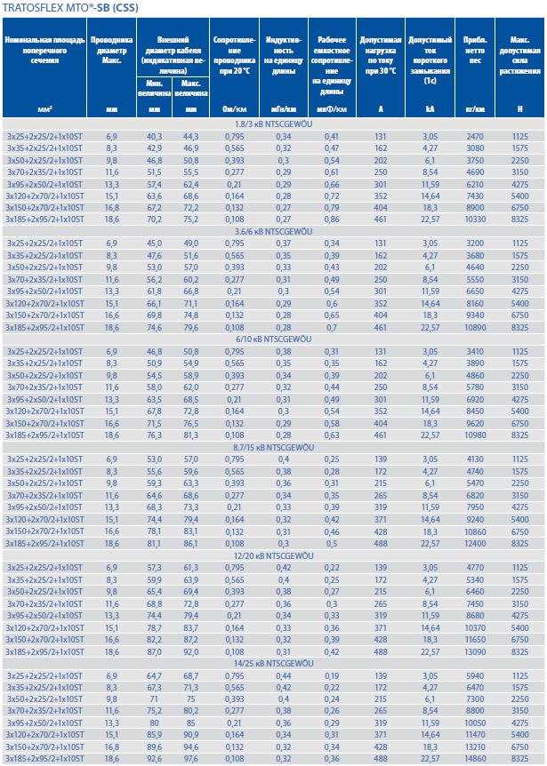 (3) Для TRATOS MTO’-SB (CSS): Три основных токоведущих жилы в пучке (NTSCGEWOU)