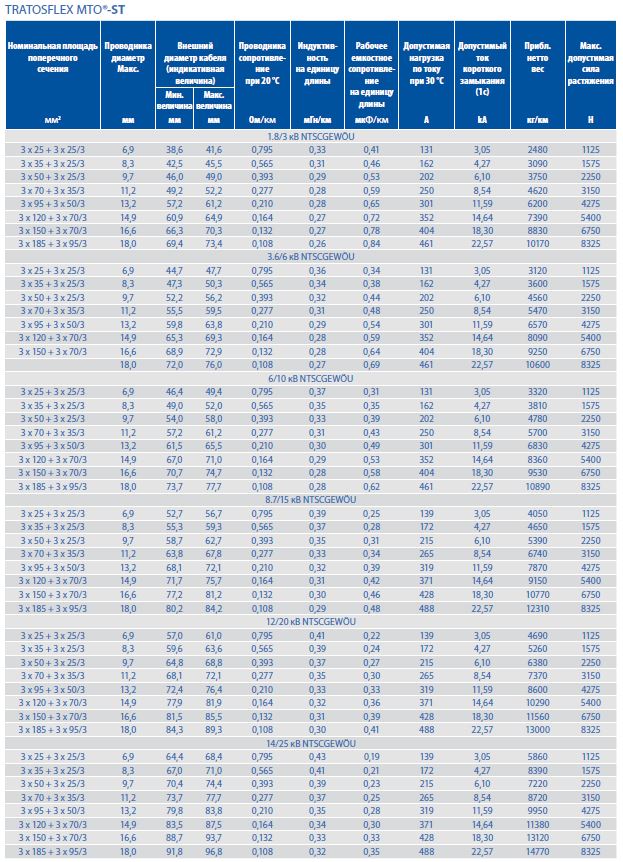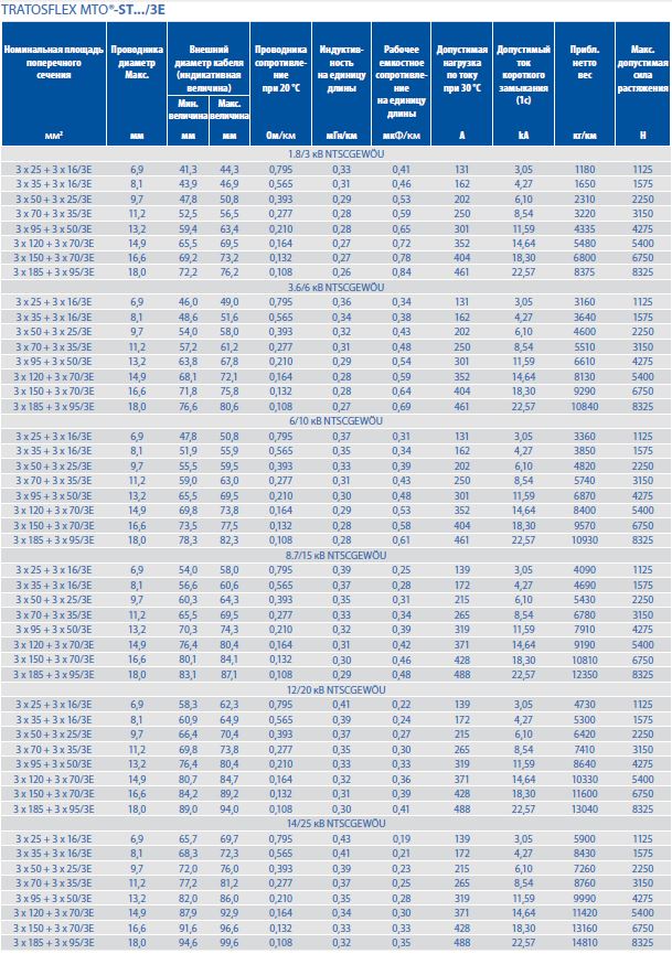 (1) Для TRATOSFLEX MTO‘-ST…/3E: Индивидуальные концентрические защитно-заземляющие проводники, распределенные по изоляции трех основных жил (NTSCGEWOU)