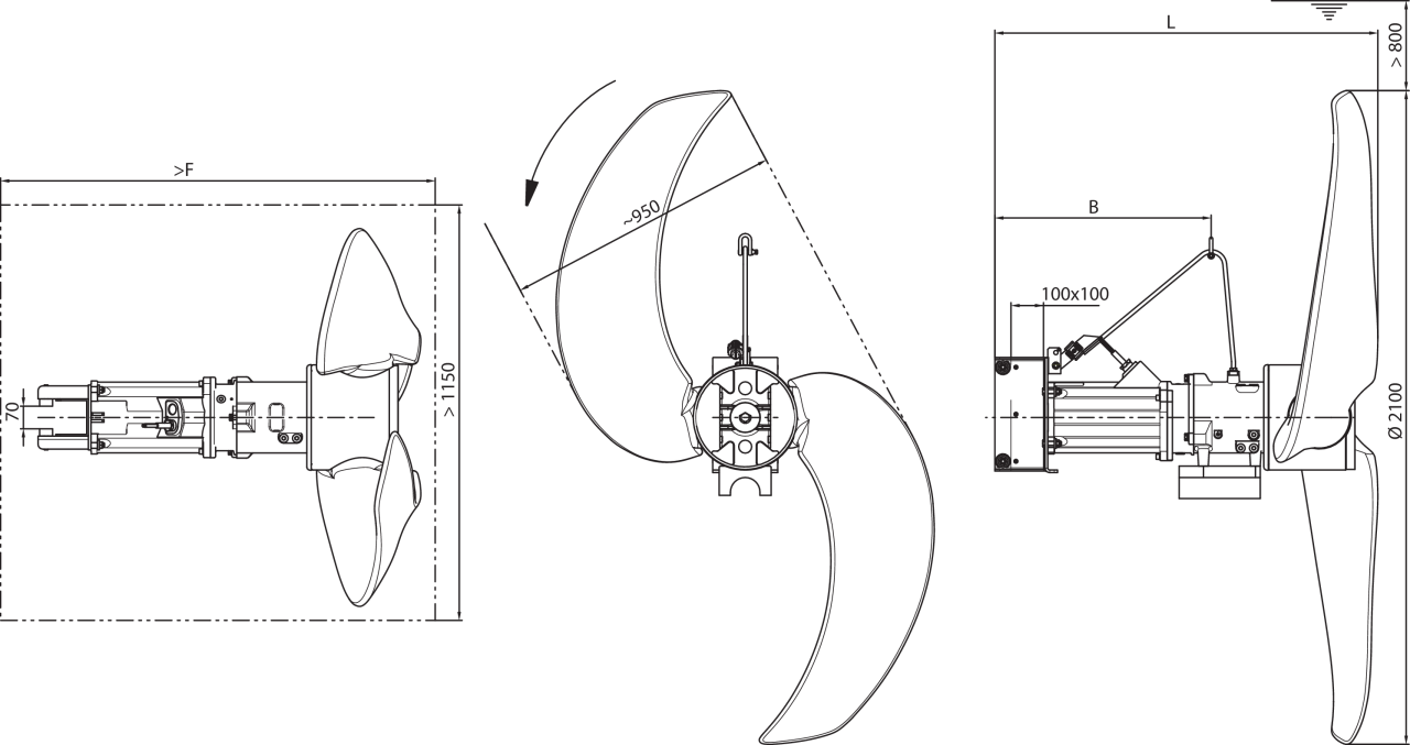 Номинальный внутренний диаметр пропеллера2100 мм