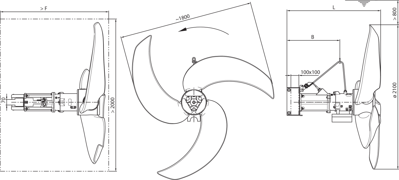 | Тип пропеллера | 3-лопастный пропеллер с самоочищающейся ступицей; изогнут в обратном направлении; благодаря этому защищен от засорения и наматывания |