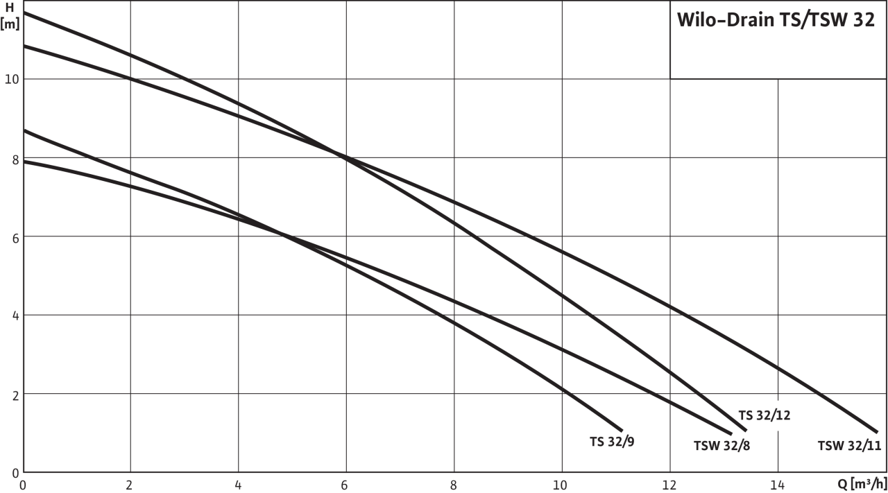 Характеристики Wilo-Drain TS/TSW 32 - 50 Гц - 2900 об/мин