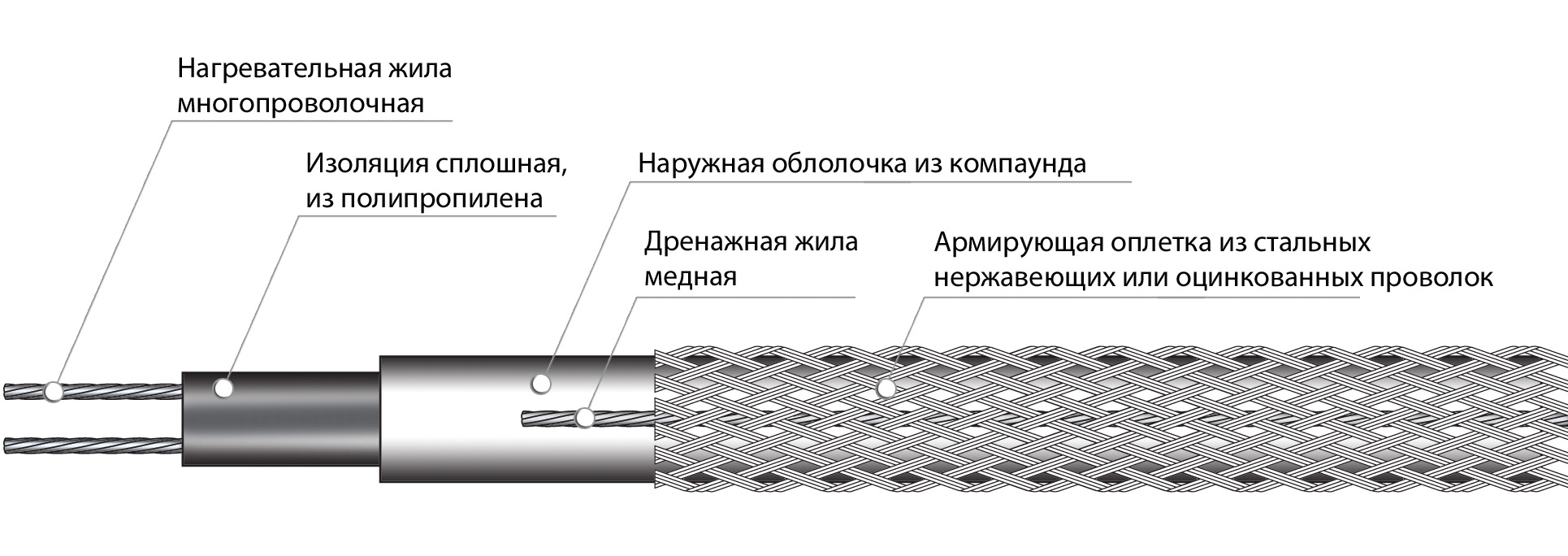 | Номинальный размер нагревательного кабеля (высота × ширина) | 7,3 × 10,1 мм |