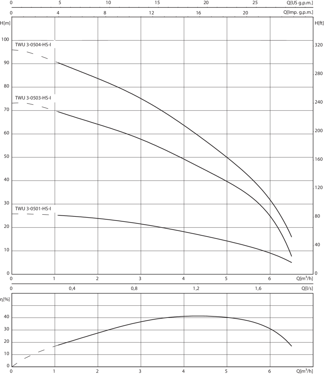 Полностью погружной многоступенчатый насос с радиальными рабочими колесами в секционном исполнении для вертикального или горизонтального монтажа со встроенным обратным клапаном. Некорродирующий асинхронный электродвигатель с частотным преобразователем с постоянной частотой вращения вплоть до 8400 об/мин для прямого подключения к сети переменного тока. Заполненный маслом электродвигатель с возможностью перемотки с самосмазывающимися подшипниками, рассчитанный на высокую частоту вращения. Охлаждение электродвигателя и частотного преобразователя происходит за счет перекачиваемых жидкостей. Этот агрегат всегда должен эксплуатироваться в погруженном состоянии. При вертикальной установке необходимо предусмотреть охлаждающий кожух в зависимости от диаметра колодца. Горизонтальный монтаж всегда выполняется с охлаждающим кожухом. Для перекачивания воды из скважин с максимальной глубиной погружения 150 м и максимальным содержанием песка 50 г/м³.