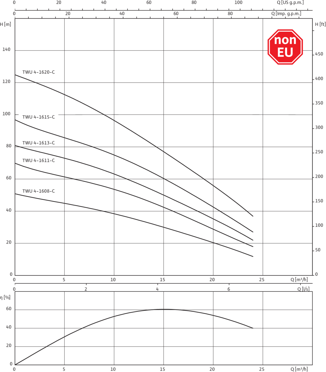 Полностью погружной многоступенчатый насос с радиальными или полуосевыми рабочими колесами в секционном исполнении для вертикального или горизонтального монтажа со встроенным обратным клапаном. Стойкий к коррозии электродвигатель однофазного или трехфазного тока для прямого пуска с водогликолевой смесью. Полностью герметичные и пропитанные смолой самосмазывающиеся подшипники с обмоткой с изолирующей лакировкой. Охлаждение электродвигателя происходит за счет перекачиваемой жидкости. Этот агрегат всегда должен эксплуатироваться в погруженном состоянии. Горизонтальный монтаж выполняется с охлаждающим кожухом. Для перекачивания воды из скважин с максимальной глубиной погружения 200 м и максимальным содержанием песка 50 г/м³.