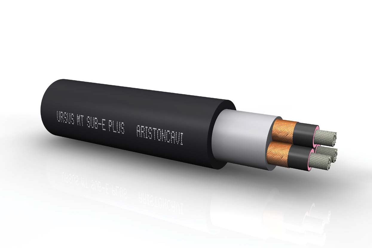 Гибкий кабель для подачи энергии для использования при постоянном погружении в воду при высоких механических нагрузках: насосы, земснаряды, плавучие доки и т. Д. Он подходит для погружения на глубину до 300 м и для буксировки карьерного оборудования.