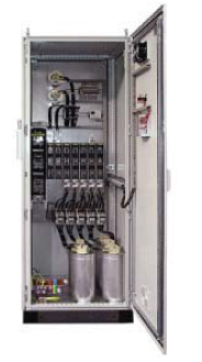Установка состоит из модульных трехфазных конденсаторных батарей, которые включаются и выключаются автоматически посредством контакторов, оснащенных устройством, способным ограничивать пик тока включения на основе требуемой для установки емкостной реактивной мощности. Оборудование размещается в металлическом шкафу с минимальной степенью защиты IP30. Шкаф может использоваться как в составе общего сборного щита ГРЩ (ВРУ), причем в любой оболочке (Hager, Schneider Electric, ABB, Rittal и т.д.), так и как отдельностоящий шкаф с кабельным вводом сверху или снизу (в этом случае на входе устанавливается автоматический выключатель).