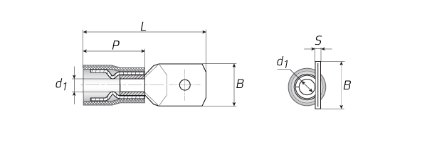 | Наименование | Сечение (мм²) | Ток, А | Размер контакта | B(мм) | L(мм) | P(мм) | d₁(мм) | S(мм) |