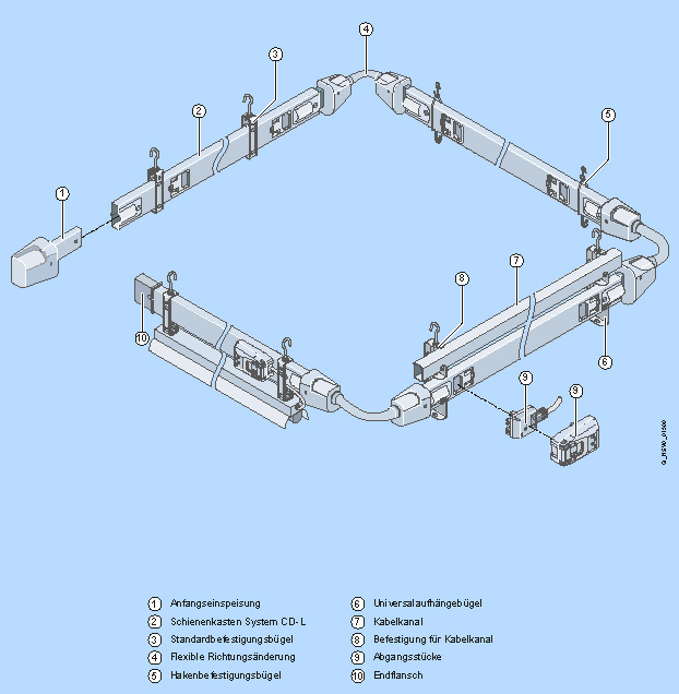 Магистральные устройства, включая имеющие устройства нагрузки и концевые заглушки, собираются с помощью простого вставного соединения, которое фиксируется винтом. PE проводник соединяется через соединение корпуса.