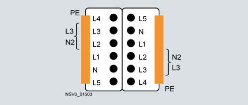 Разъемы отходящих линий могут быть снабжены контактами L4/L5 для 7-проводных и 7+7-проводных устройств шинопроводов.