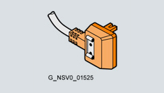 Стандартное исполнение рассчитано на нагрузку 10 A и оборудовано кабелем FROR длиной 1 м с сечением проводников 3 x 1 мм² FROR с сетевой конфигурацией: L4/L5. крышка и основание разъема оранжевые.
