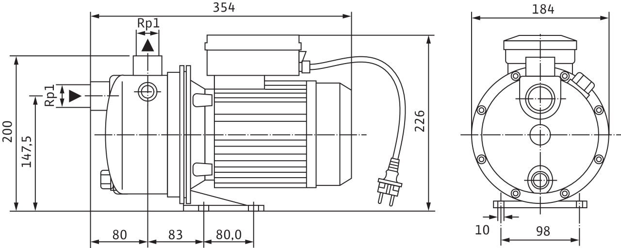 Переносной самовсасывающий одноступенчатый горизонтальный струйный насос для перекачивания воды в режиме всасывания и подвода. Напрямую присоединенный фланцами электродвигатель однофазного или трехфазного тока; в исполнении для однофазного тока со встроенным термическим защитным выключателем электродвигателя и конденсатором, а также отдельным выключателем ВКЛ./ВЫКЛ. Насос готов к подключению и включает в себя несущую раму и соединительный кабель длиной 2 м со штекером с защитным контактом; идеально подходит для переносной эксплуатации в саду или для различных увлечений. В исполнении для трехфазного тока подключение выполняется через клеммную коробку.