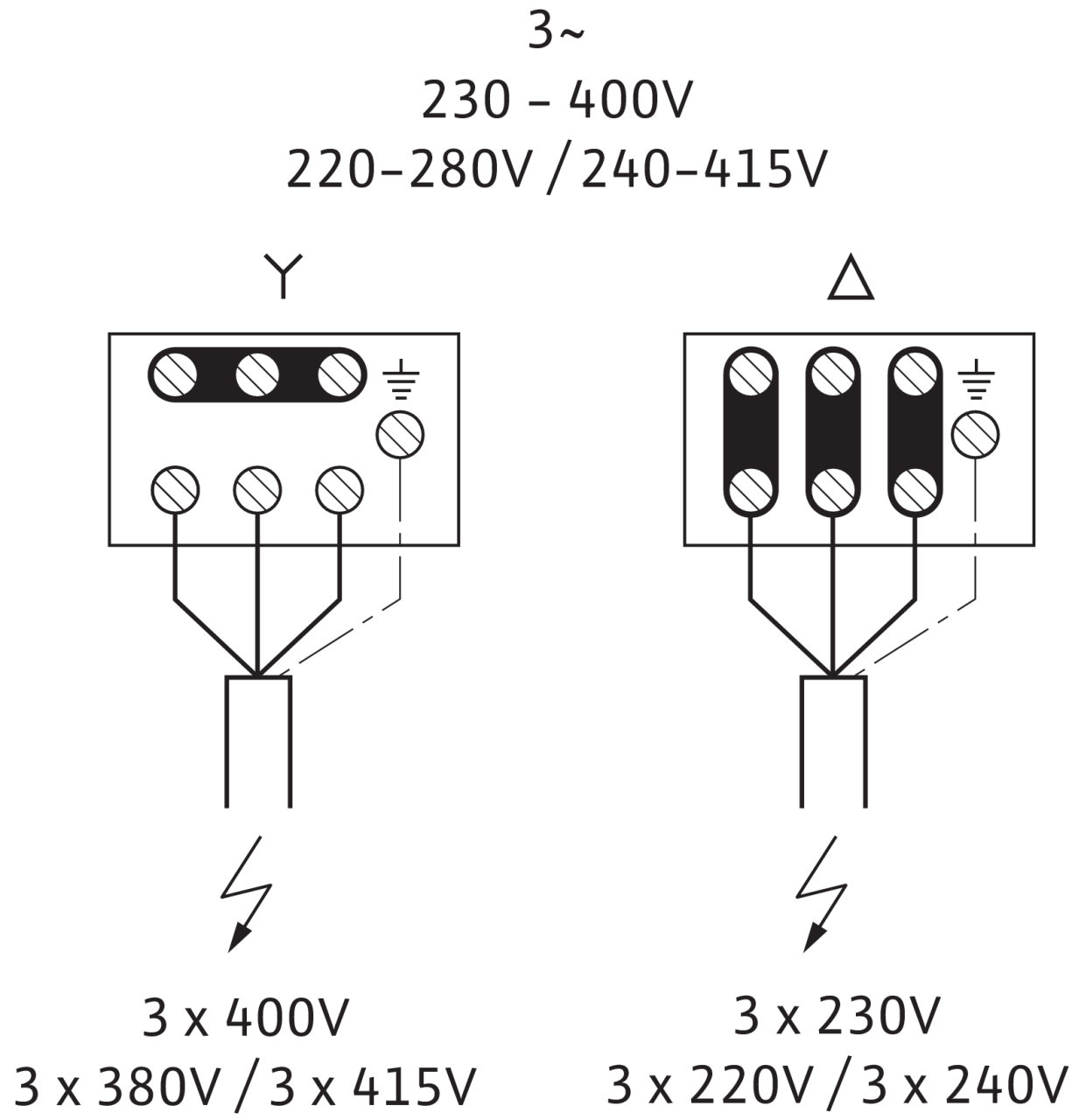 Подключение к сети 3~, стандартное исполнение230/400 В