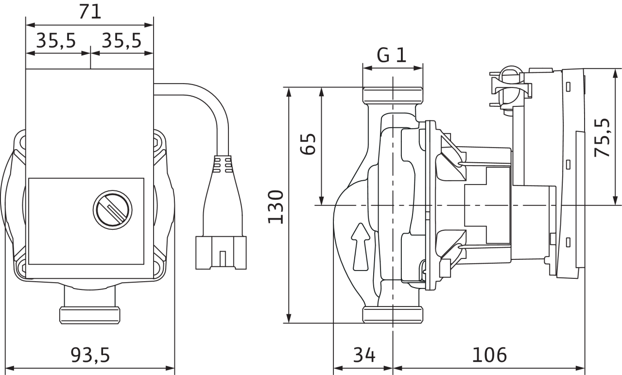 Габаритный чертеж Yonos PICO STG 15/1-7.5 130