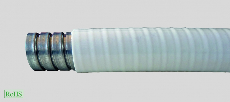 Highest requirements to cleanliness and cleaning. Protection tubes from reinforced galvanised steel band with spiral wound, latched (from 1 1/2» double folded profile — Agraff) and a thick smooth thermoplastic PVC jacket.
