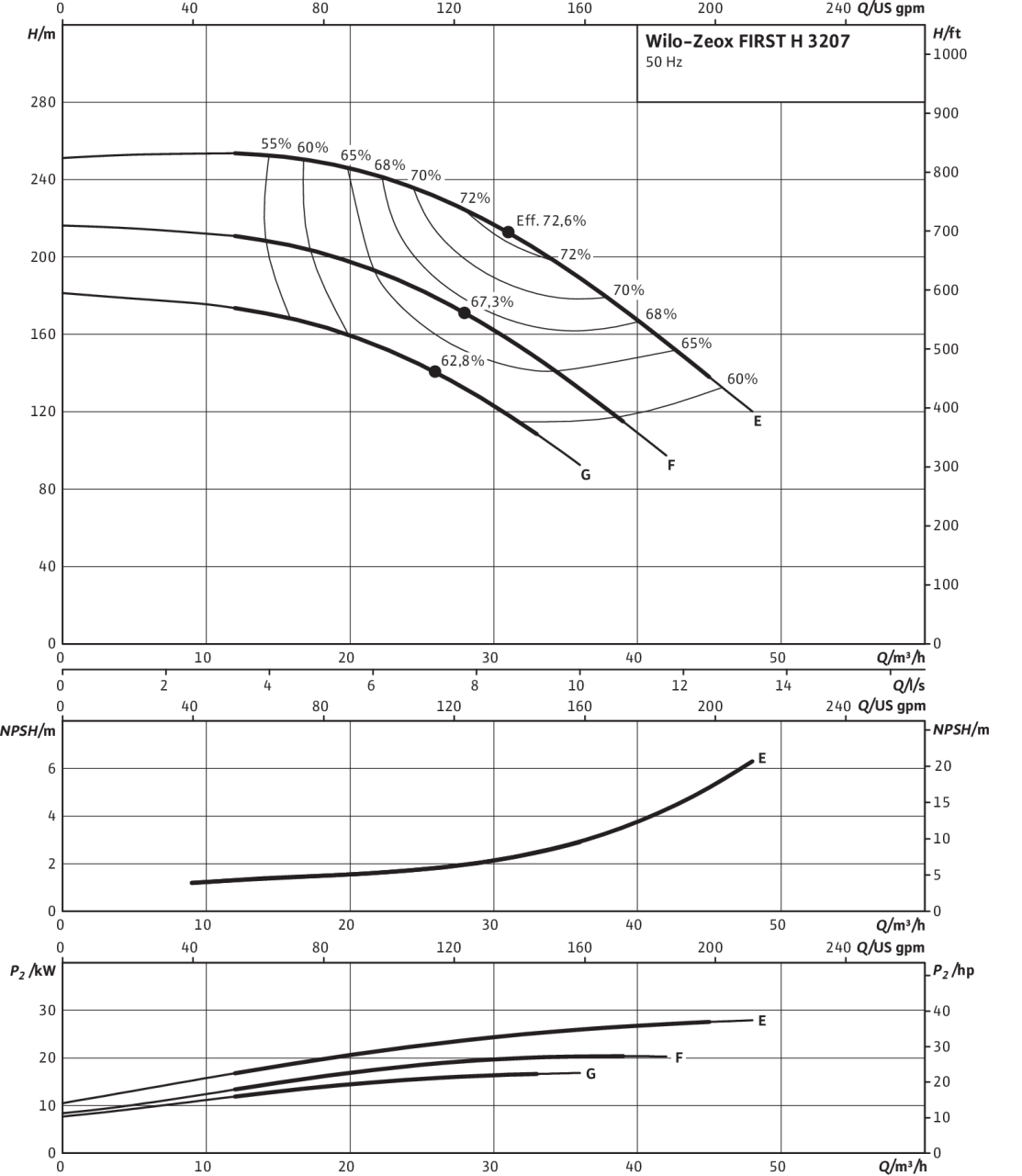 | Номинальный внутренний диаметр фланца (с напорной стороны) | DN 50 |