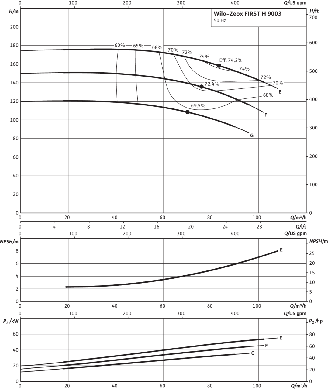 | Номинальный внутренний диаметр фланца (на стороне всасывания) | DN 80 |